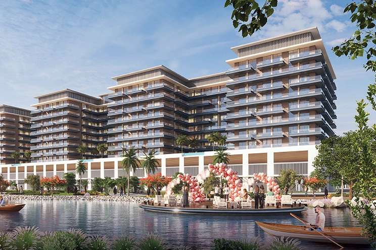 Leisure facilities include Malibu Cove, floating cinema, essential oils lake, rooftop infinity pool and sky lounges.