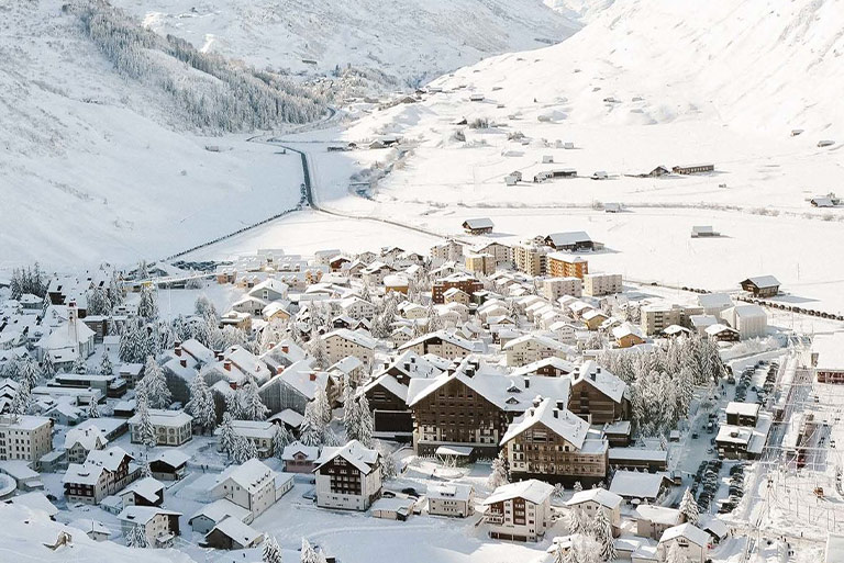 Andermatt, located in the heart of Switzerland, is easily accessible by road, rail, or air. The breathtaking journey takes only 90 minutes^ from Zurich, two hours from Milan, and four hours^ from Munich. If you prefer to fly, the airports in Zurich, Basel, Lugano, and Milan are all options. Buochs, which is only 45 minutes^ away from the village, is home to the closest private aviation strip.